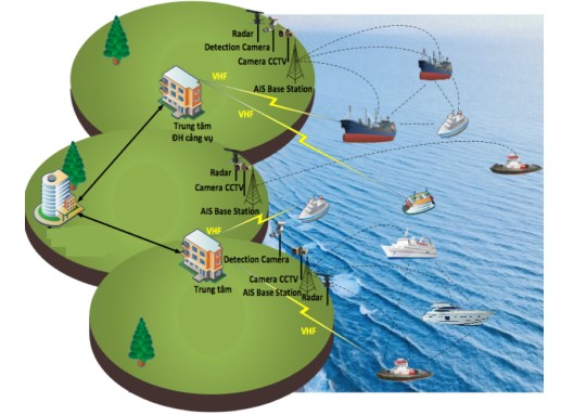 - Module ứng dụng VTMS – quản lý và xử lý dữ liệu phát sinh từ các cảm biến như radar, AIS, camera, được xử lý thêm trong các máy chủ trung tâm và được trình bày trực quan trong VTMS GUI trên các trạm vận hành.