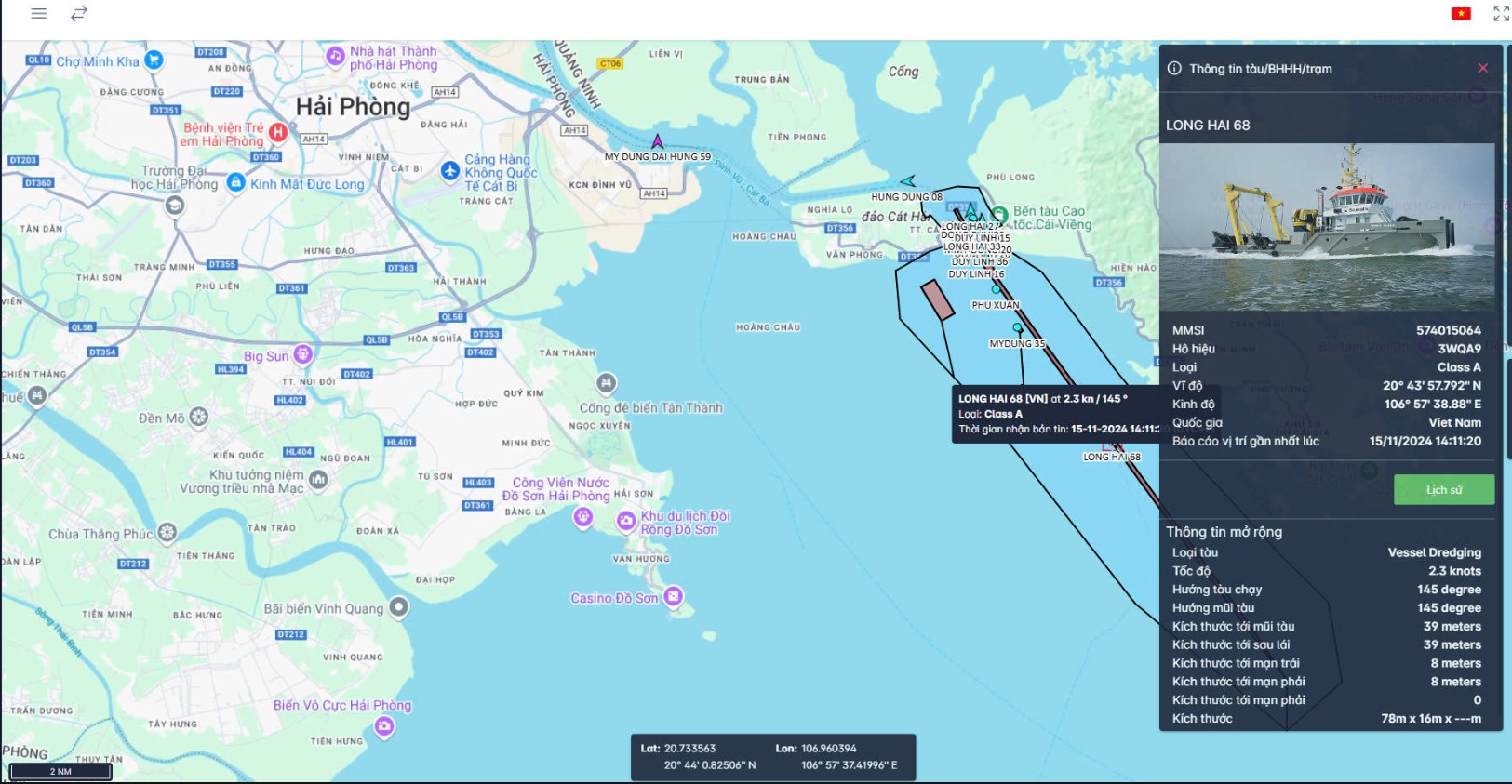 Thông qua dữ liệu AIS từ phương tiện nạo vét gửi về được hiển thị trên bản đồ số, khách hàng có thể nắm bắt được các thông tin của tàu bao gồm: thông tin về vị trí (kinh độ, vĩ độ), tốc độ, hướng và các thông tin nhận dạng khác một cách nhanh chóng và chính xác.